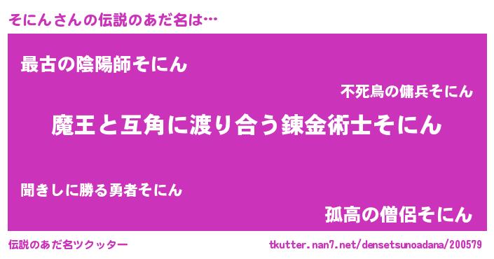 | 女子向けラノベタイトル風あだ名 | 『そにん恋絵巻』『闇のそにん』 |