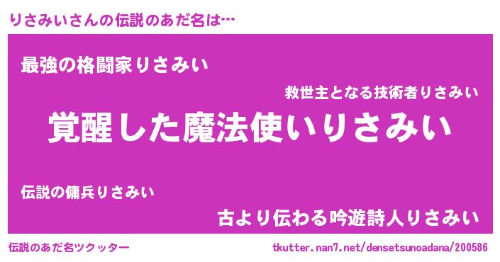 | ヒーロー風カッコイイあだ名 | 『天弓騎士リサ』『ウルトラりさみいマン』 |