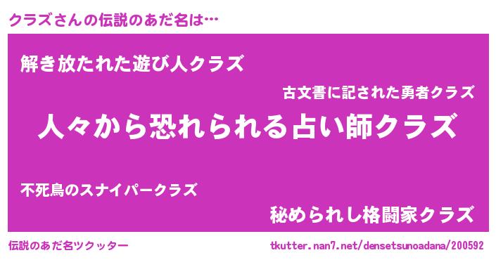 | 女子向けラノベタイトル風あだ名 | 『クラズ夫妻のなれそめ』『闇のクラズ』 |