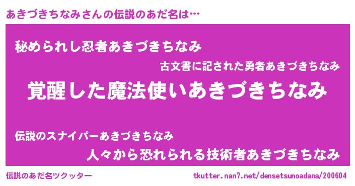 | 意味不明あだ名 | 『とにかく怪しいあきづきちなみ』 |