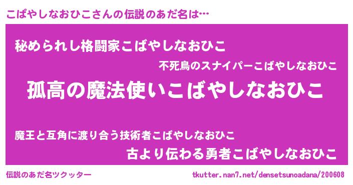 | 胡散臭い通販商品みたいなあだ名 | 『信頼と実績のサプリメント…その名も「こばやしなおひこ」』 |