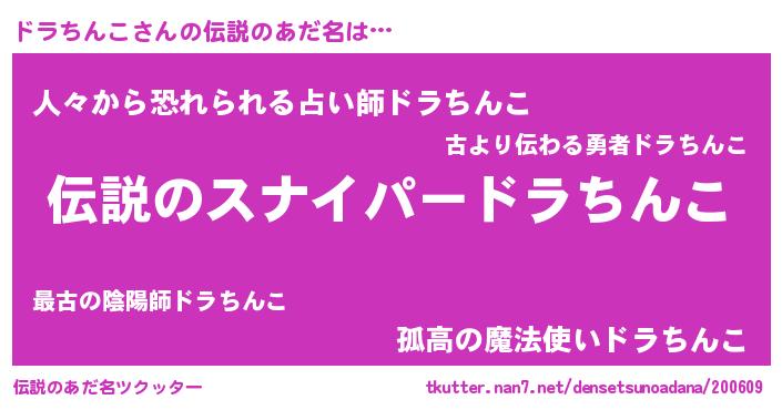 | 意味不明あだ名 | 『ペロリンドラちんこ』『自称ドラちんこ』 |