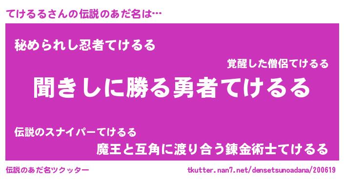 | 胡散臭い通販商品みたいなあだ名 | 『ガンによく効く冬虫夏草…その名も「てけるる」』 |