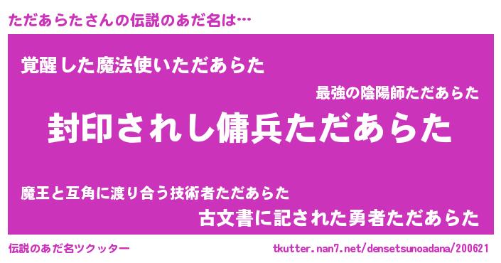 | ヒーロー風カッコイイあだ名 | 『スーパータダアラタ』『仮面タダダー』 |