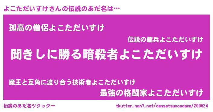 | 意味不明あだ名 | 『永久保存よこただいすけ』 |