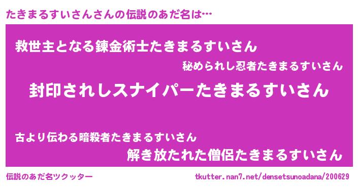 | 意味不明あだ名 | 『住所不定無職たきまるすいさん(93歳)』 |