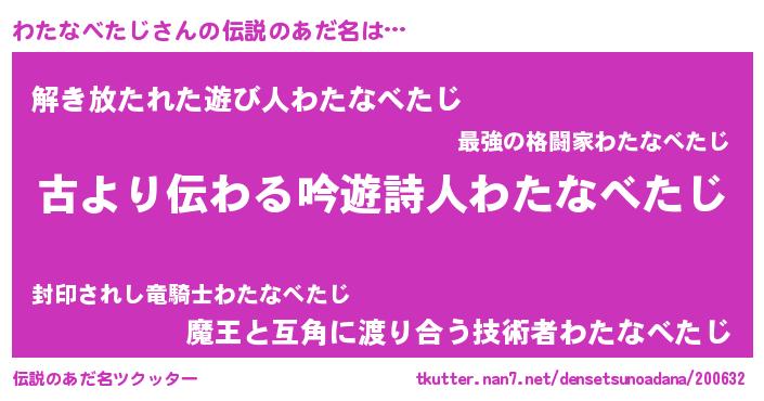 | 意味不明あだ名 | 『住所不定無職わたなべたじ(8歳)』 |