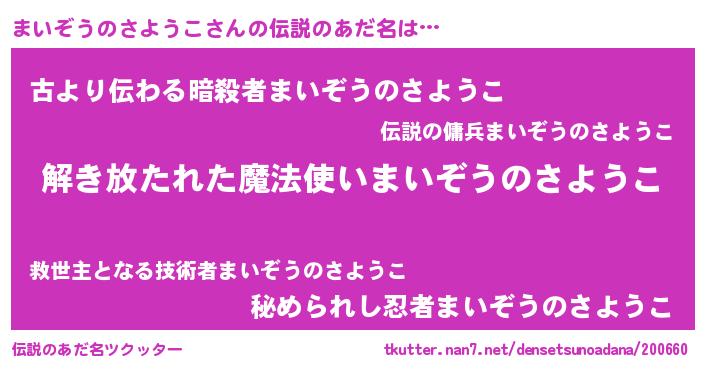 | 意味不明あだ名 | 『自称まいぞうのさようこ』 |