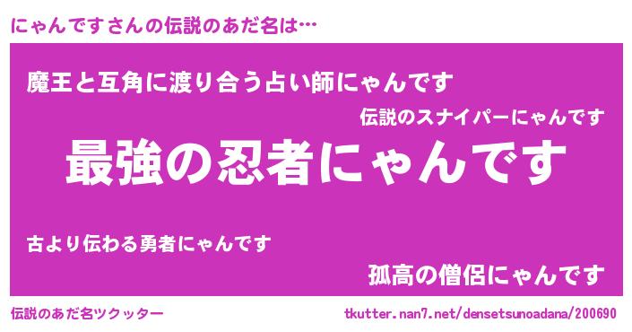 | 意味不明あだ名 | 『にゃんですフォーエバー』 |