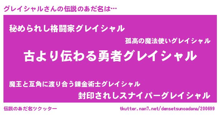 | 意味不明あだ名 | 『住所不定無職グレイシャル(86歳)』 |