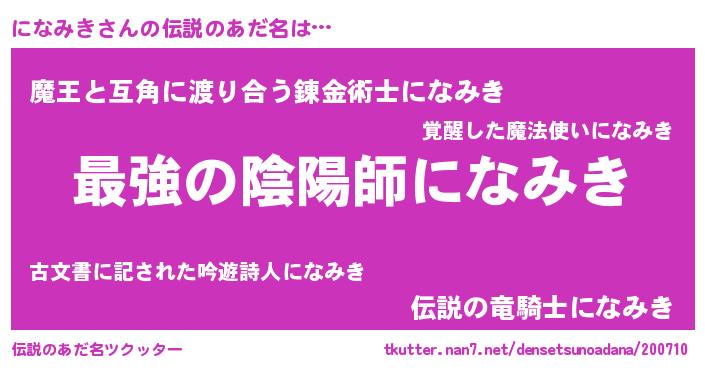 | ヒーロー風カッコイイあだ名 | 『ウルトラになみきマン』『幻影騎士ニナ』 |