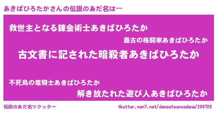 | 意味不明あだ名 | 『永久保存あきばひろたか』 |