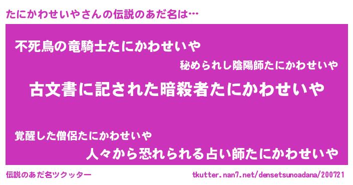 | 意味不明あだ名 | 『住所不定無職たにかわせいや(43歳)』 |