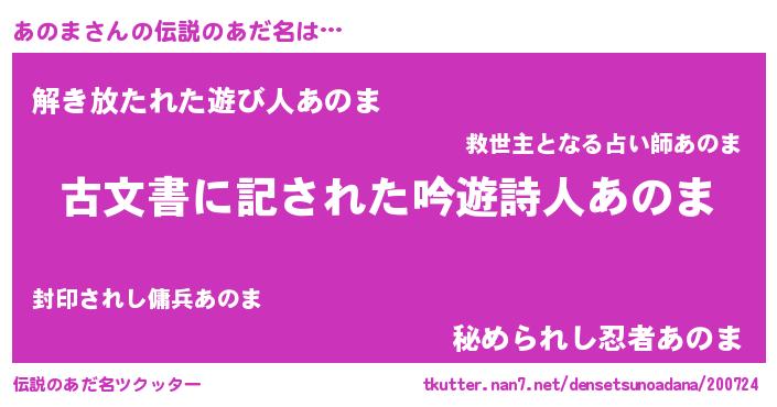 | 意味不明あだ名 | 『住所不定無職あのま(8歳)』 |