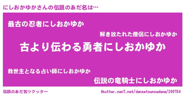 | 意味不明あだ名 | 『永久保存にしおかゆか』 |