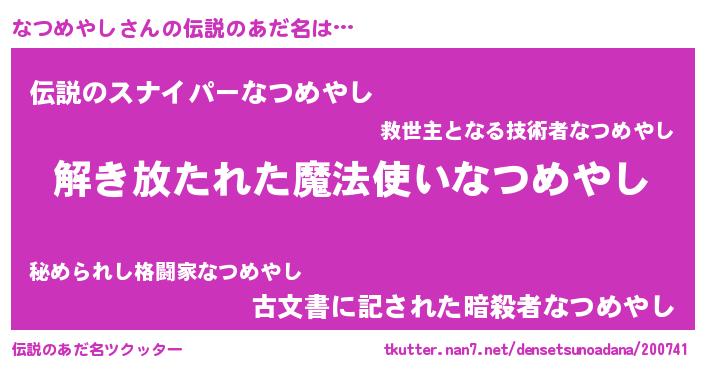 | ピコ太郎風あだ名 | 『ナツ三郎』『ナコ十郎』『ピコナ郎』 |