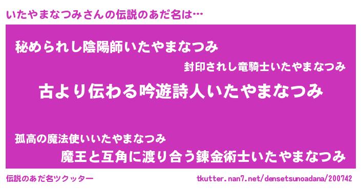 | 料理風あだ名 | 『いたやまなつみごはん』 |