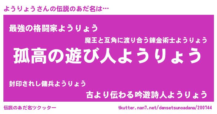 | 意味不明あだ名 | 『住所不定無職ようりょう(95歳)』 |