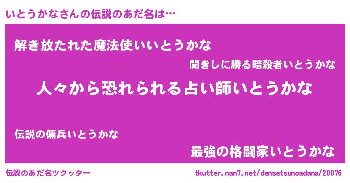 | ヒーロー風カッコイイあだ名 | 『友情の使者いとうかな』『天弓騎士イト』 |