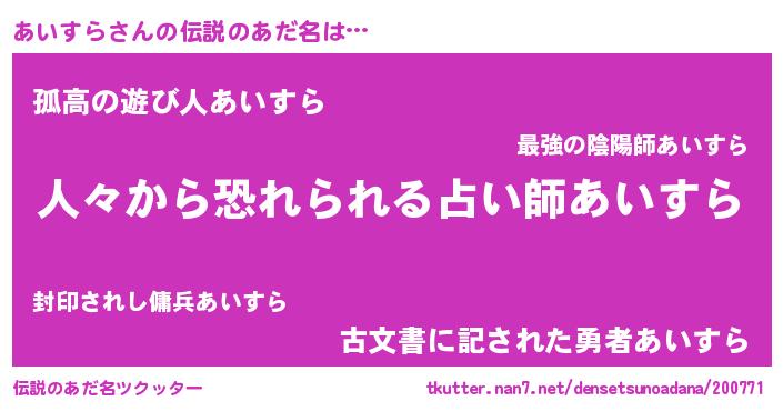 | 欧米人風あだ名 | 『ダニエルあいすら』『ウサインあいすら』 |