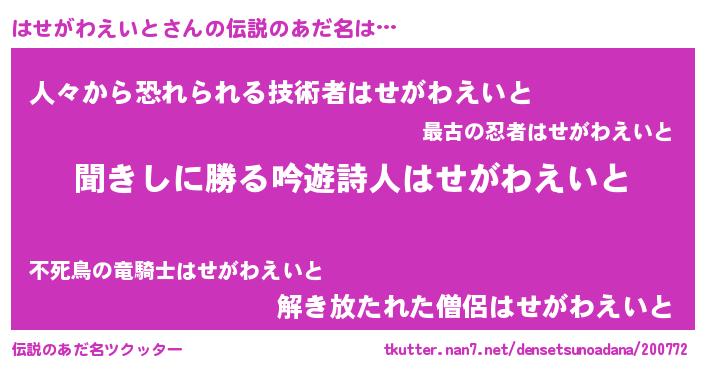| ヘコむあだ名 | 『はせがわえいと(小並感)』『はせを』 |