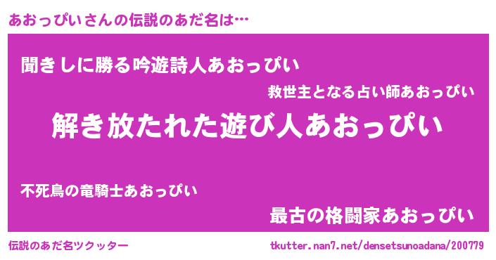 | ポケモン風あだ名 | 『ヒアオッピイ』『アーオイ』 |