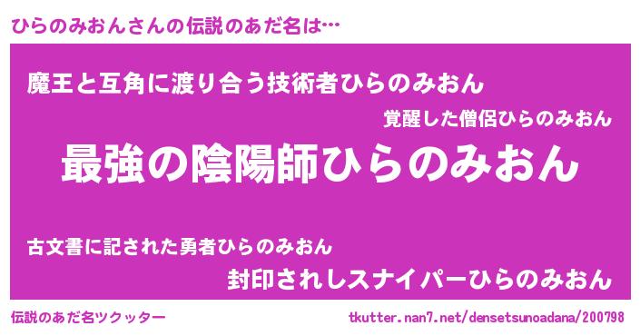 | 意味不明あだ名 | 『ひらのみおんフォーエバー』 |