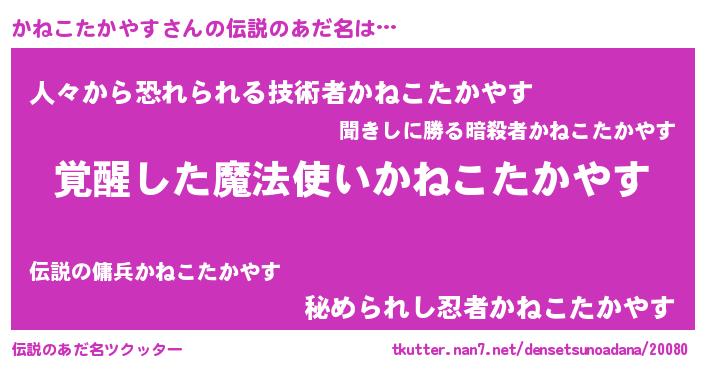 | ヒーロー風カッコイイあだ名 | 『最強戦士カネコタカヤス』 |