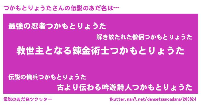 | 男性向けラノベタイトル風あだ名 | 『つかもとりょうたに滅ぼされるだけの簡単なお仕事です』 |