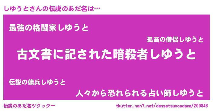 | ヒーロー風カッコイイあだ名 | 『ネオシユウト』『超時空戦士シユウト』 |