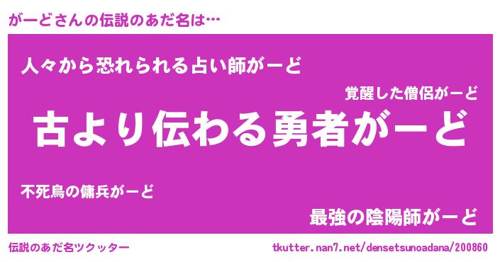 | 意味不明あだ名 | 『永久保存がーど』『自称がーど』 |