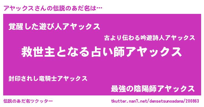 | 意味不明あだ名 | 『自称アヤックス』 |