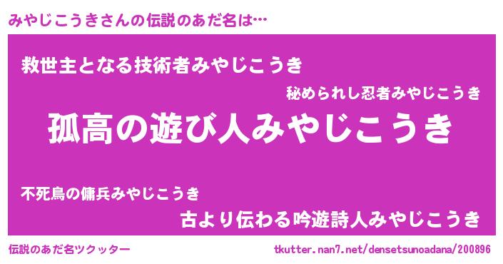 | ポケモン風あだ名 | 『ヒミヤジコウキ』『ミヤゴンZ』 |