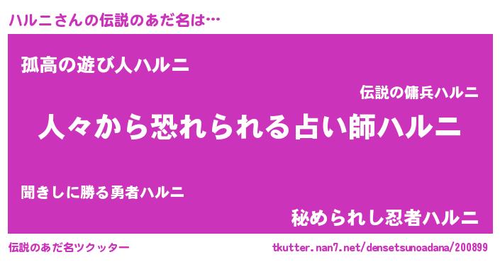 | 意味不明あだ名 | 『住所不定無職ハルニ(47歳)』『自称ハルニ』 |