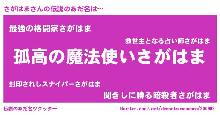 | ヒーロー風カッコイイあだ名 | 『暗黒騎士サガ』『ウルトラ戦士サガハマ』 |
