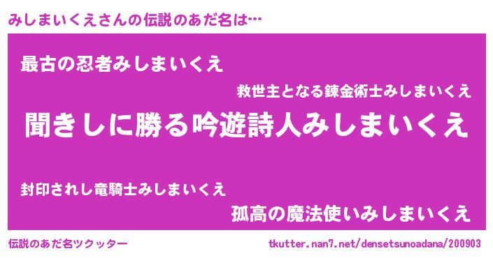 | ヒーロー風カッコイイあだ名 | 『ネオミシマイクエ』『仮面ミシダー』 |