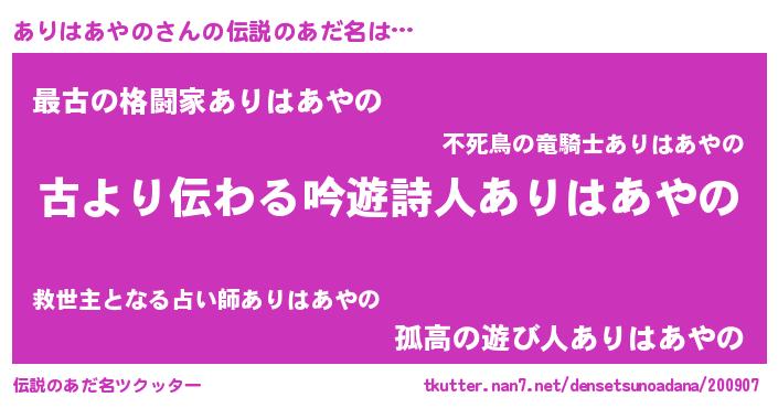 | 意味不明あだ名 | 『永久保存ありはあやの』 |