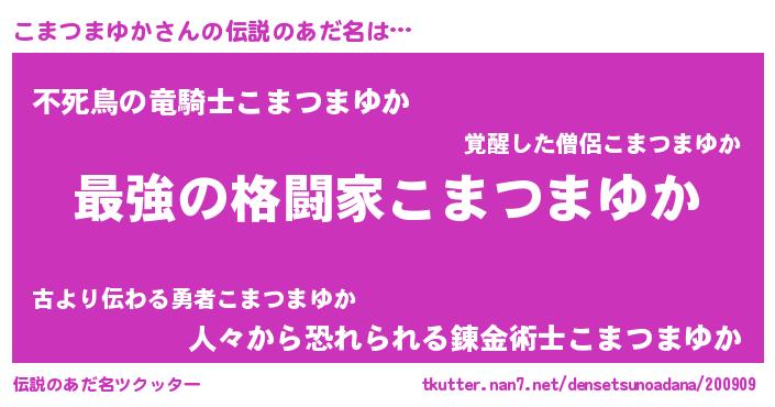 | ファンタジー風あだ名 | 『エターナルコマツマユカー』 |