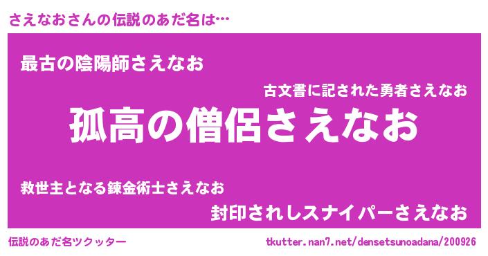 | ヒーロー風カッコイイあだ名 | 『暗黒騎士サエ』『ウルトラさえなおマン』 |