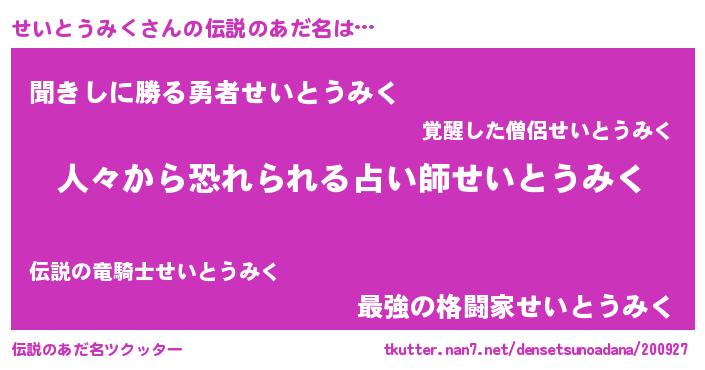 | ポケモン風あだ名 | 『セックウザ』『セイセウス』 |