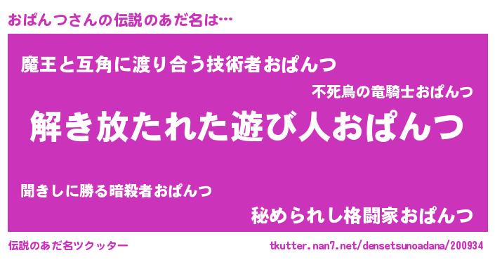 | 意味不明あだ名 | 『住所不定無職おぱんつ(93歳)』 |