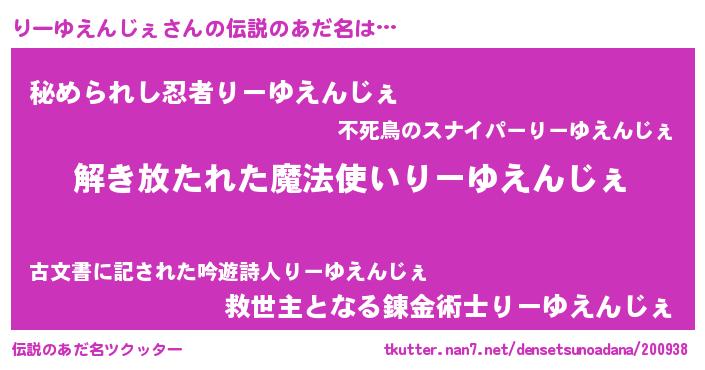 | 意味不明あだ名 | 『とにかく怪しいりーゆえんじぇ』 |