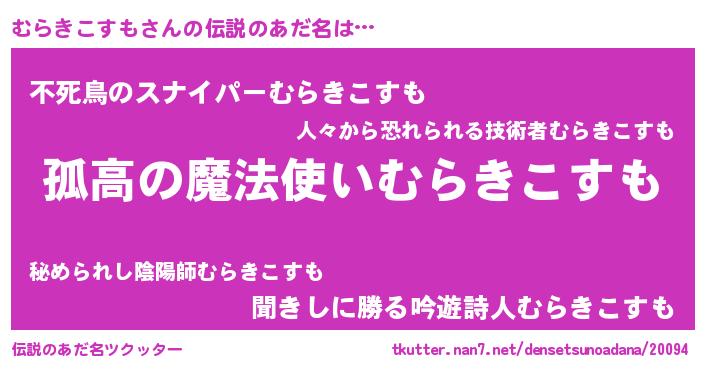 | 男性向けラノベタイトル風あだ名 | 『ムラキコスモスレイヤー』 |