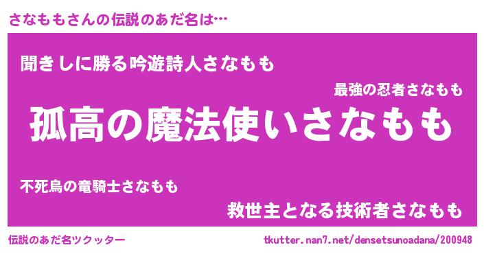 | 意味不明あだ名 | 『とにかく怪しいさなもも』 |