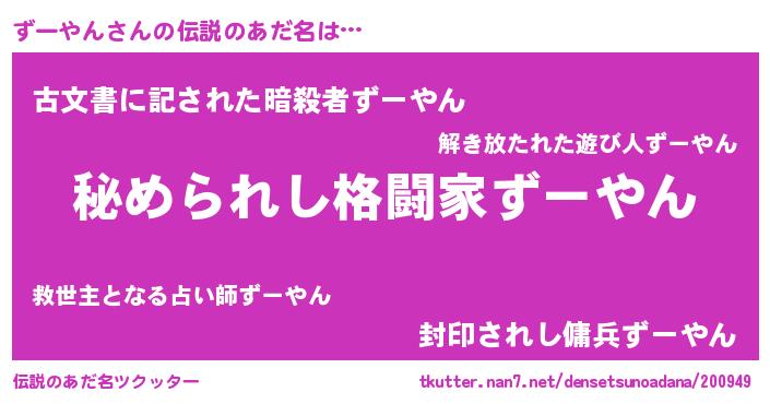 | 男性向けラノベタイトル風あだ名 | 『やはりずーやんの青春ラブコメはまちがっている 』 |