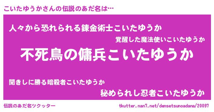 | ヒーロー風カッコイイあだ名 | 『スーパーコイタユウカ』『仮面コイダー』 |