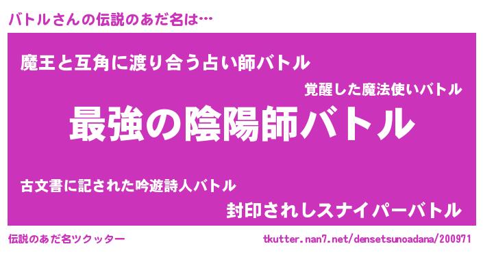 | 意味不明あだ名 | 『ヨモギ科バトル属』『自称バトル』 |