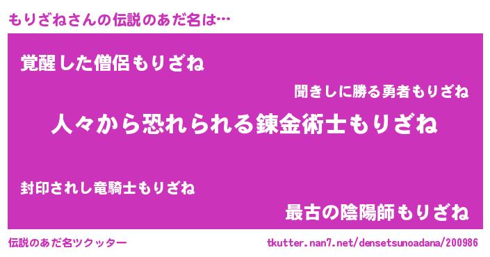| ヘコむあだ名 | 『もりぷりん』『酢こんぶ』 |