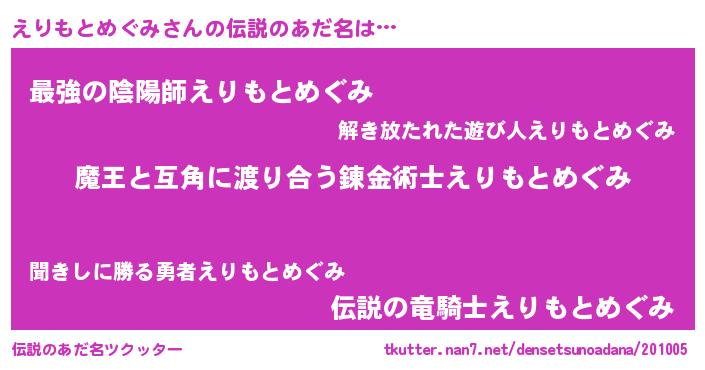 | 胡散臭い通販商品みたいなあだ名 | 『お金では代えられない隕石のかけら…その名も「えりもとめぐみ」』 |
