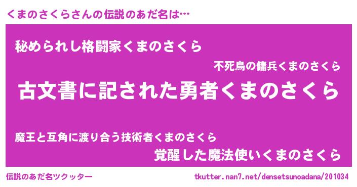 | 意味不明あだ名 | 『永久保存くまのさくら』 |